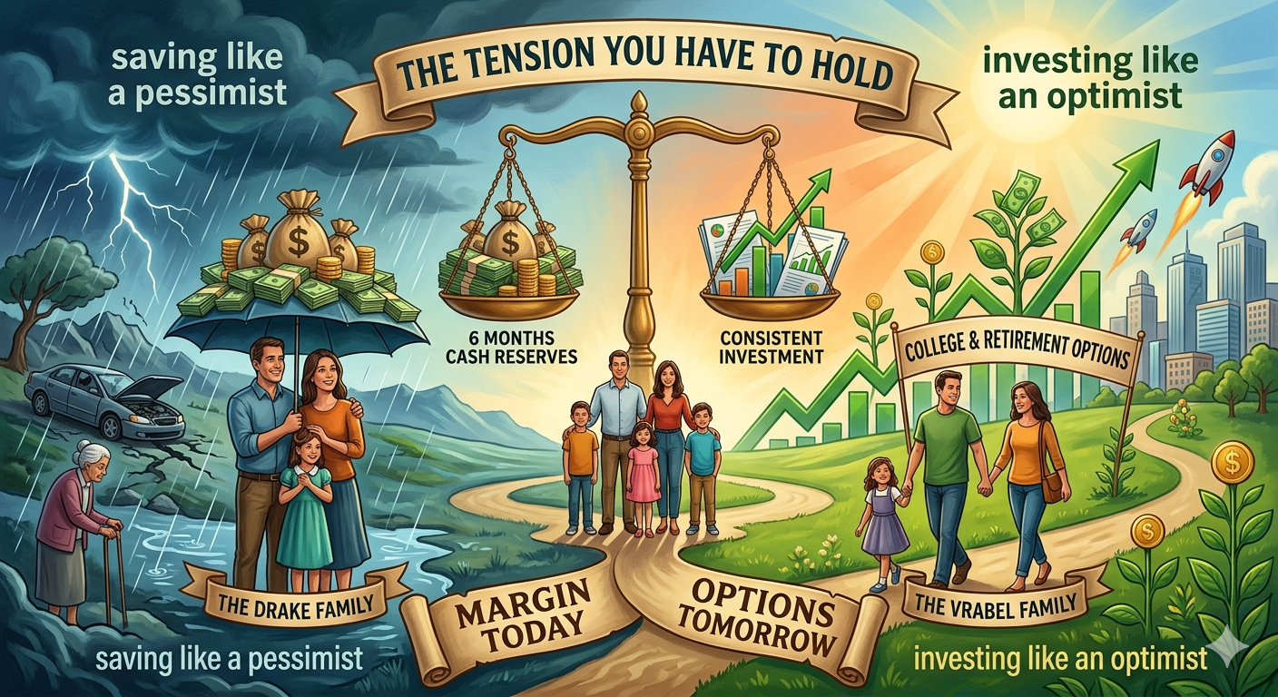 Here's what struck me. They were building wealth for 30 years from now while being completely fragile today. They were investing like optimists, trusting their portfolio would compound and they'd retire comfortably. But they weren't saving like pessimists. They had no margin for when life happened.